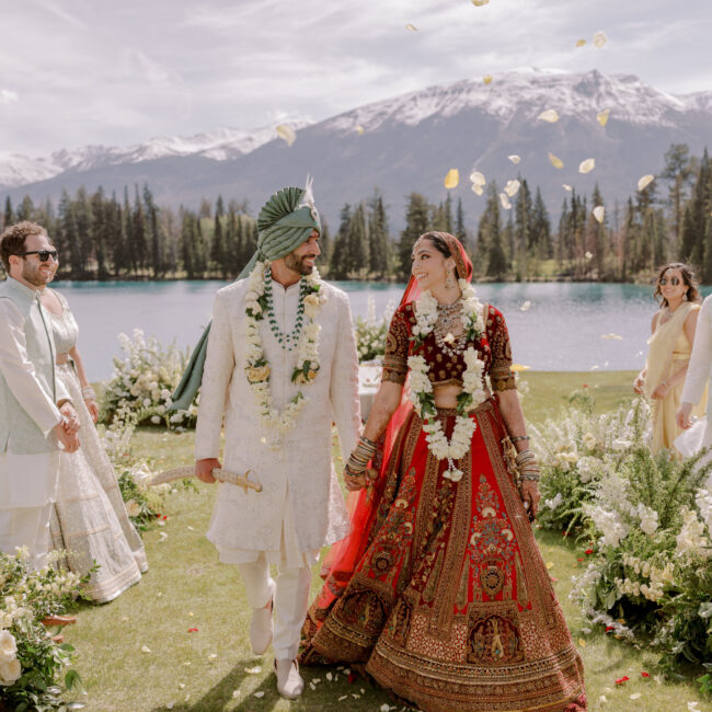 The second day of events for Sonya and Rahul’s destination wedding in Jasper, Canada featured the Haldi Ceremony and the Sangeet.