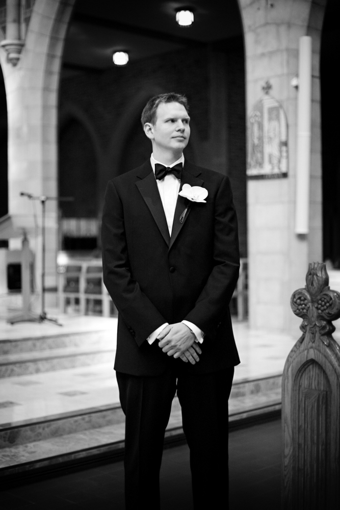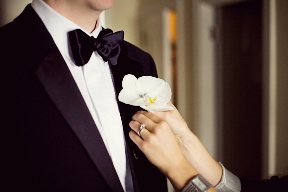 Love a groom in a bowtie. Paired with a phalaenopsis orchid boutonniere – elegant and timeless!