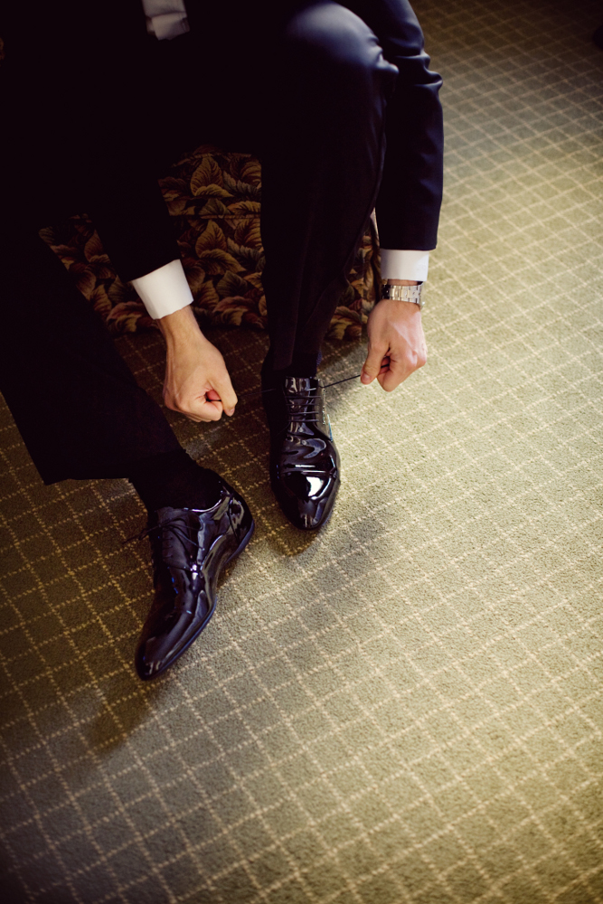 On the morning of their wedding, Jay and Joe got ready at The Westin Edmonton before meeting up for a “first look” and photos with their wedding party and families. Jay wore a gorgeous fitted lace gown by Essense of Australia (D1108) in ivory from Pure Bridal and a pair of stunning silver Jimmy Choo’s!